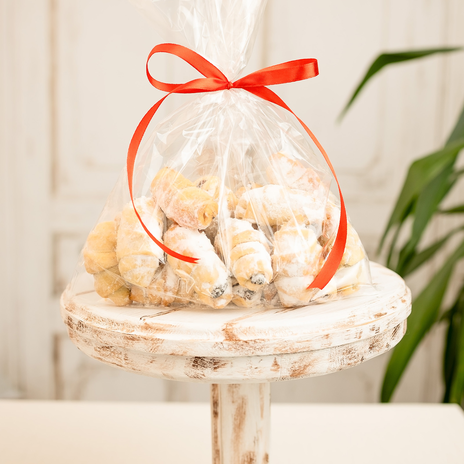 - Fiecare cornuleț este îmbogățit cu un strop de borș pentru o textură perfectă și un gust echilibrat, apoi pudrat generos cu zahăr fin pentru a completa experiența culinară.
